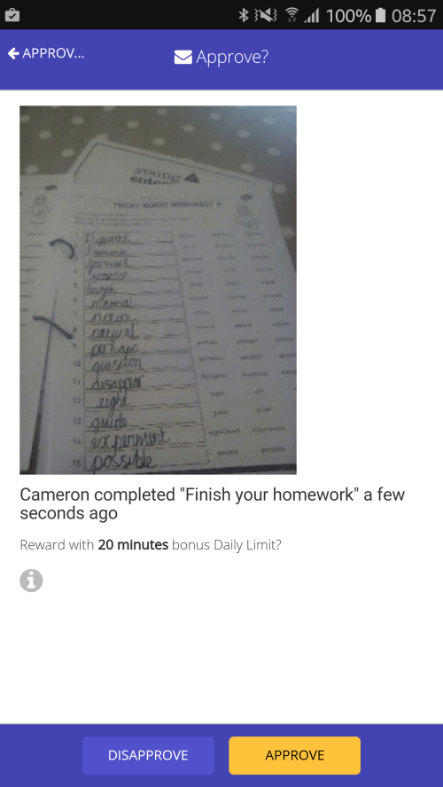 A neat feature is the ability to reward your offspring with additional time on their device for completing tasks. Tasks can be anything you like – they are free to define. This gamifies the whole experience but really switches the obligation from one generation to the next. You can set a number of chores for completion, and then your kids can take a photo and beg for more time!
