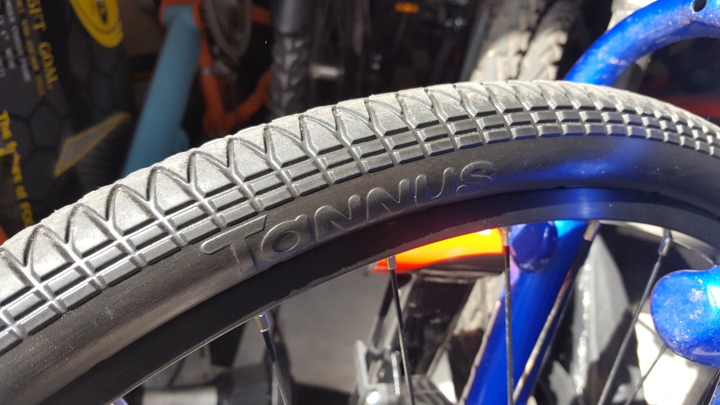 Further research yielded the idea of so-called tubeless, or rigid tyres. These don’t have inner tubes, or any type of inflated rubber, to speak of. Thus no punctures. After more research, reading several reviews and contacting a bike specialist in London, I took the plunge and ordered a pair of Tannus tyres. Tannus are a South Korean brand who have developed their rigid tyre and in 2016, launched a refined version of their Aither polymer compound.